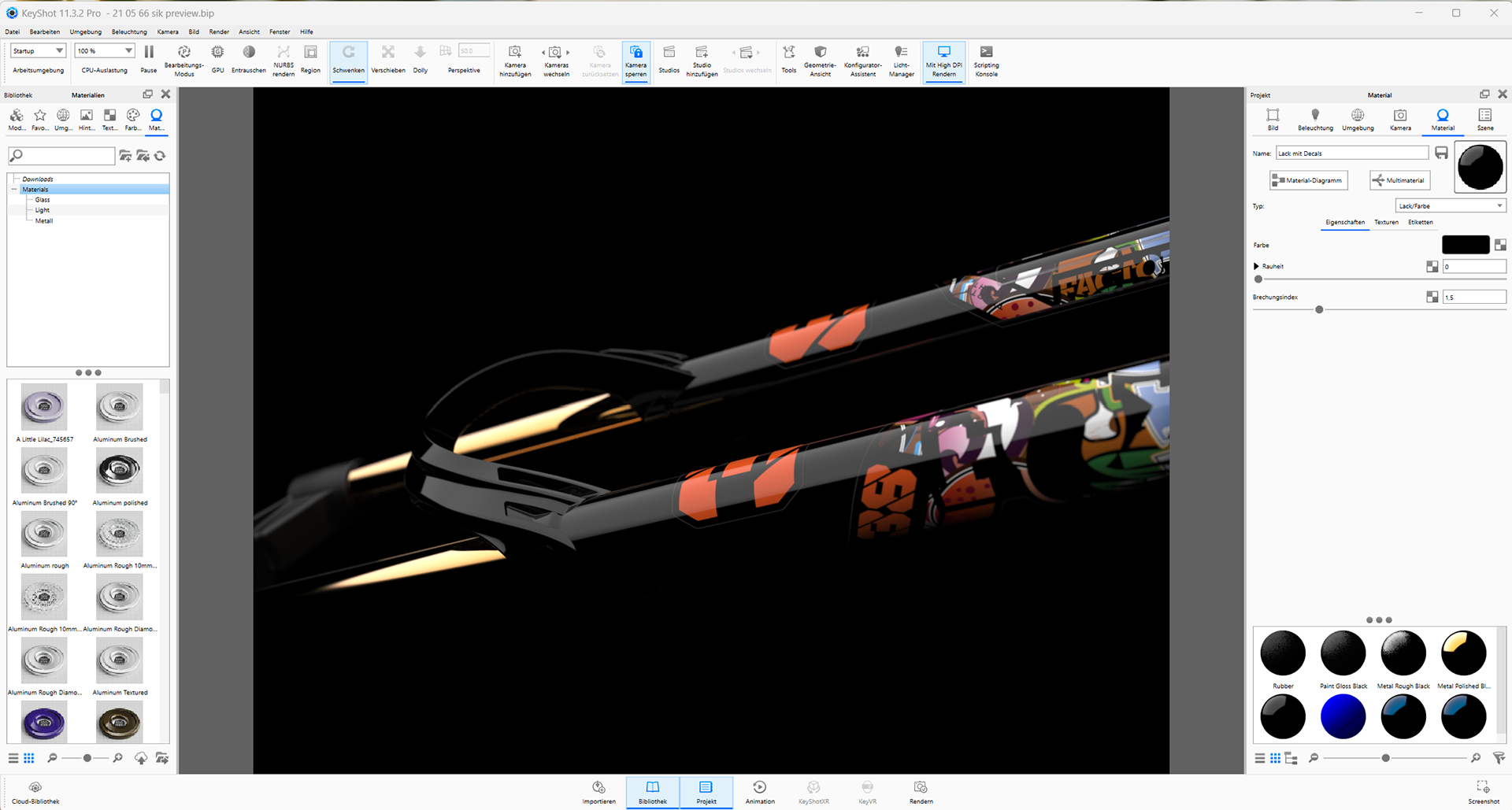 Next, I brought the 3D model into Keyshot, where I applied textures, surfaces, materials, and decals. This stage involved creating variations and setting up the camera, environment, and lighting to achieve the desired visual effects. Keyshot provided a user-friendly interface for positioning and adjusting lights, emulating a photography studio. Adding the final touches, such as depth of field and focal length, helped enhance the overall visual impact of the renderings.