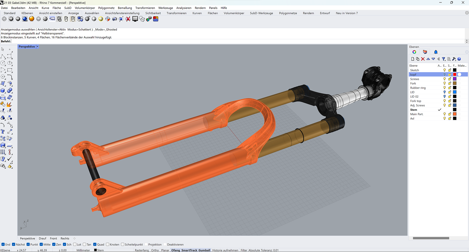 The process began with a high-quality 3D model created in Rhino, which allowed me to accurately represent all the relevant details of the fork. Balancing the imperfections inherent in the real product with the precise construction in the computer was a crucial aspect of the design process. My aim was to create 3D data that could be used for production files, ensuring accurate physics and geometry, even if it ultimately resulted in just a few images.